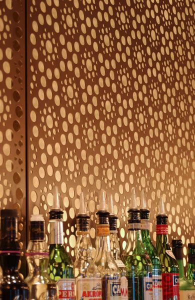 Internal fit out by Team 2, perforated aluminium by Ripple Iron anodised Satin Pale Bronze. 3rd Pic close up of anodised Ripple Iron screen.